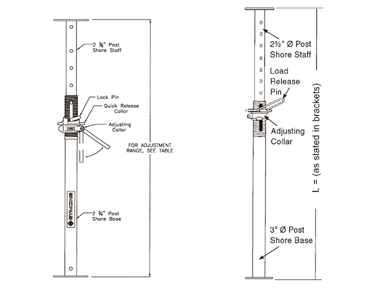 Los puntales abarcan, gracias a su variedad de modelos, todo el abanico de posibilidades planteadas en la construcción, desde modelos ligeros, hasta modelos tipo Europeo mucho más reforzados, o las series especiales para apuntalamientos excepcionales. La variación en sus medidas de longitud hace también que queden resueltos todos los problemas de una moderna edificación.