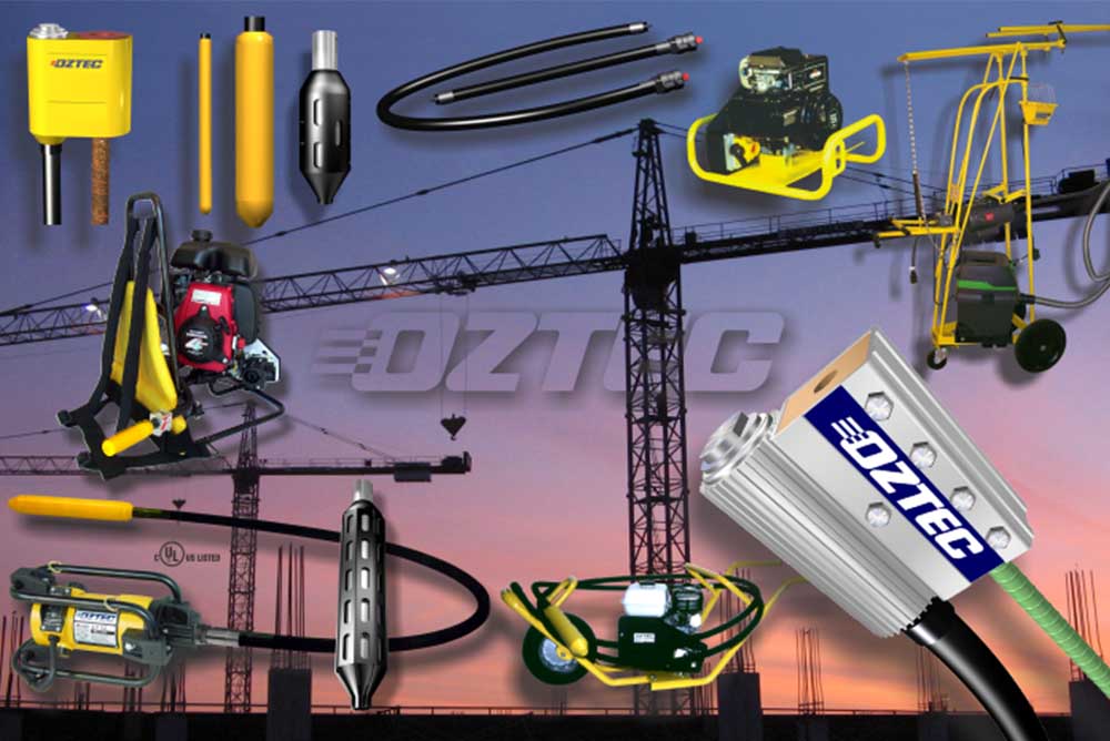 Los cabezales vibratorios de acero Oztec generan máxima amplitud de vibraciones y fuerza centrífuga. Poseen el radio de acción más amplio de todos los cabezales disponibles en el mercado.